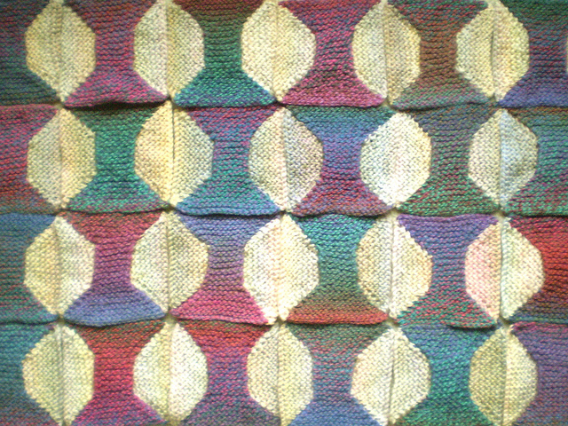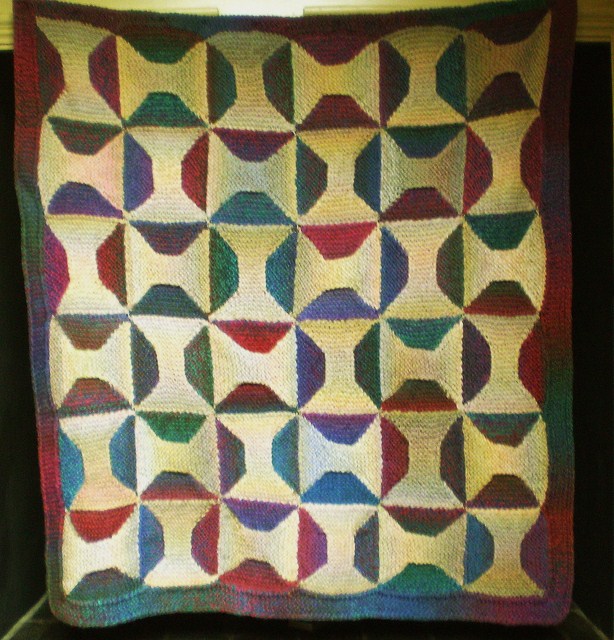 Итак, один блок готов. Приступайте к вязанию следующего. Связав достаточное количество блоков (это зависит от размеров вашего пледа), приступайте к их сборке. В отличие от предыдущего пледа, здесь вам предлагается два варианта - уложить катушки одного цвета шахматкой или в одну линию: