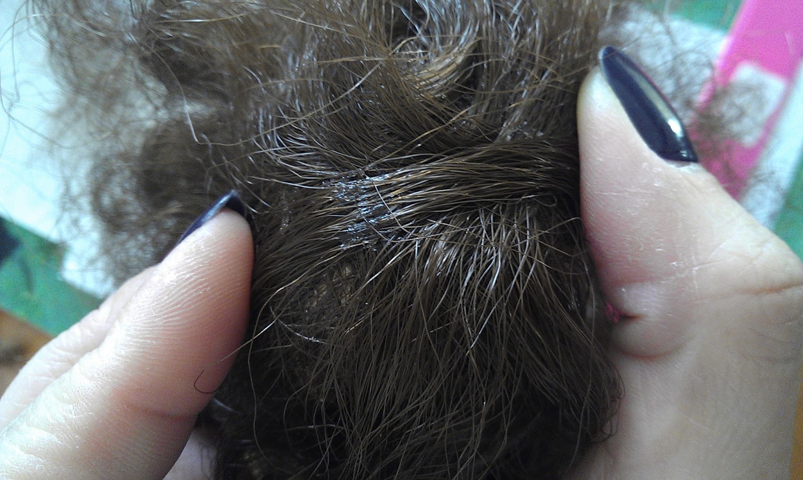 Когда волосами покрыта вся голова, нужно очень аккуратно заклеить макушку. Приклеивая прядь, капайте совсем немного клея, так, чтобы он не был виден сквозь волосы. Последние пряди в данном случае, я приклеивала таким образом: отрезала волосы длиной в два раза больше, чем нужно для прически, приклеивала за середину локона, чтобы одна часть была у лица, вторая спускалась к затылку.