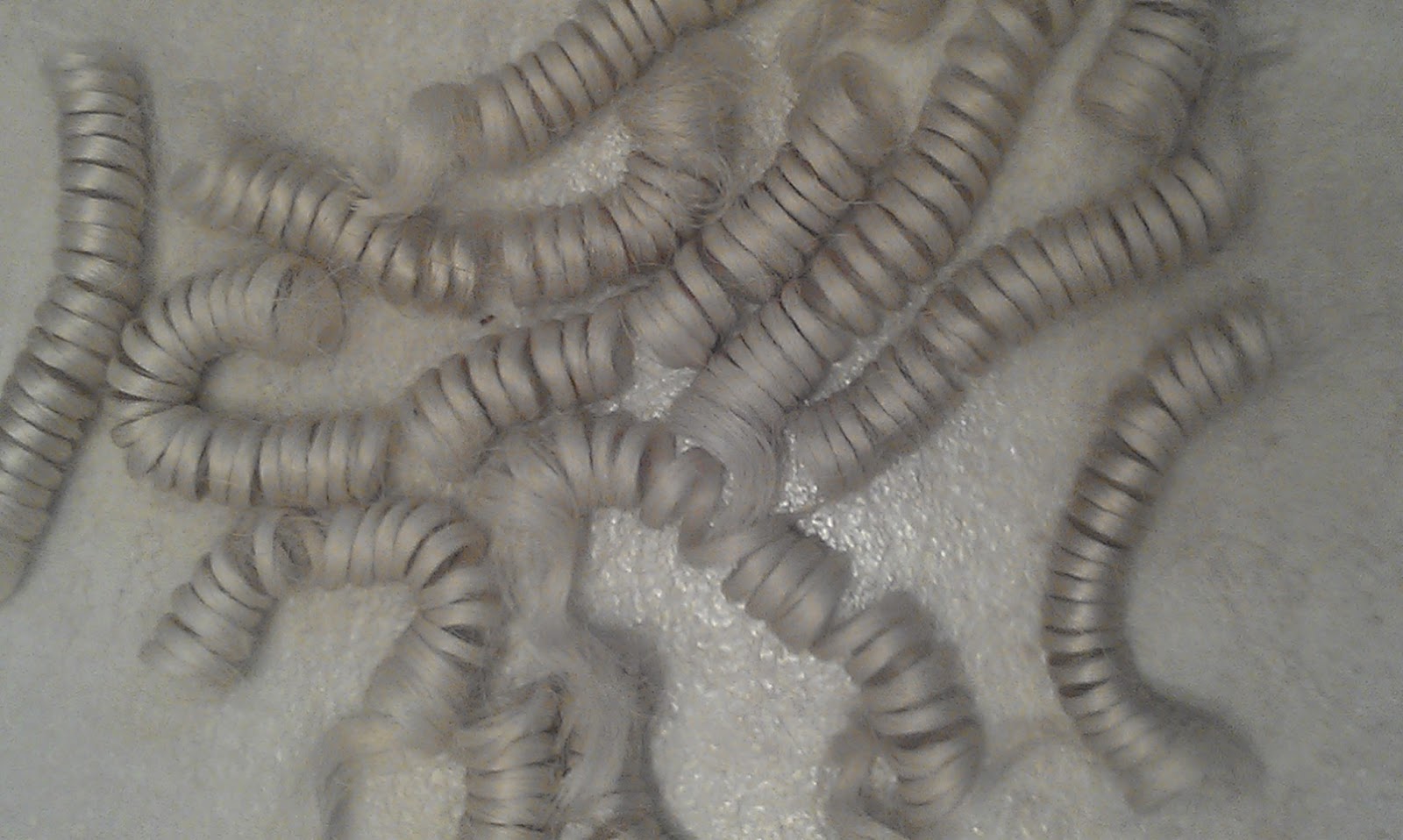 Достаем "колбаску", остужаем, убираем фольгу, аккуратно снимаем волосы с бигуди. Мокрые пряди нужно высушить, я сушила на батарее. Получаются тугие локоны: