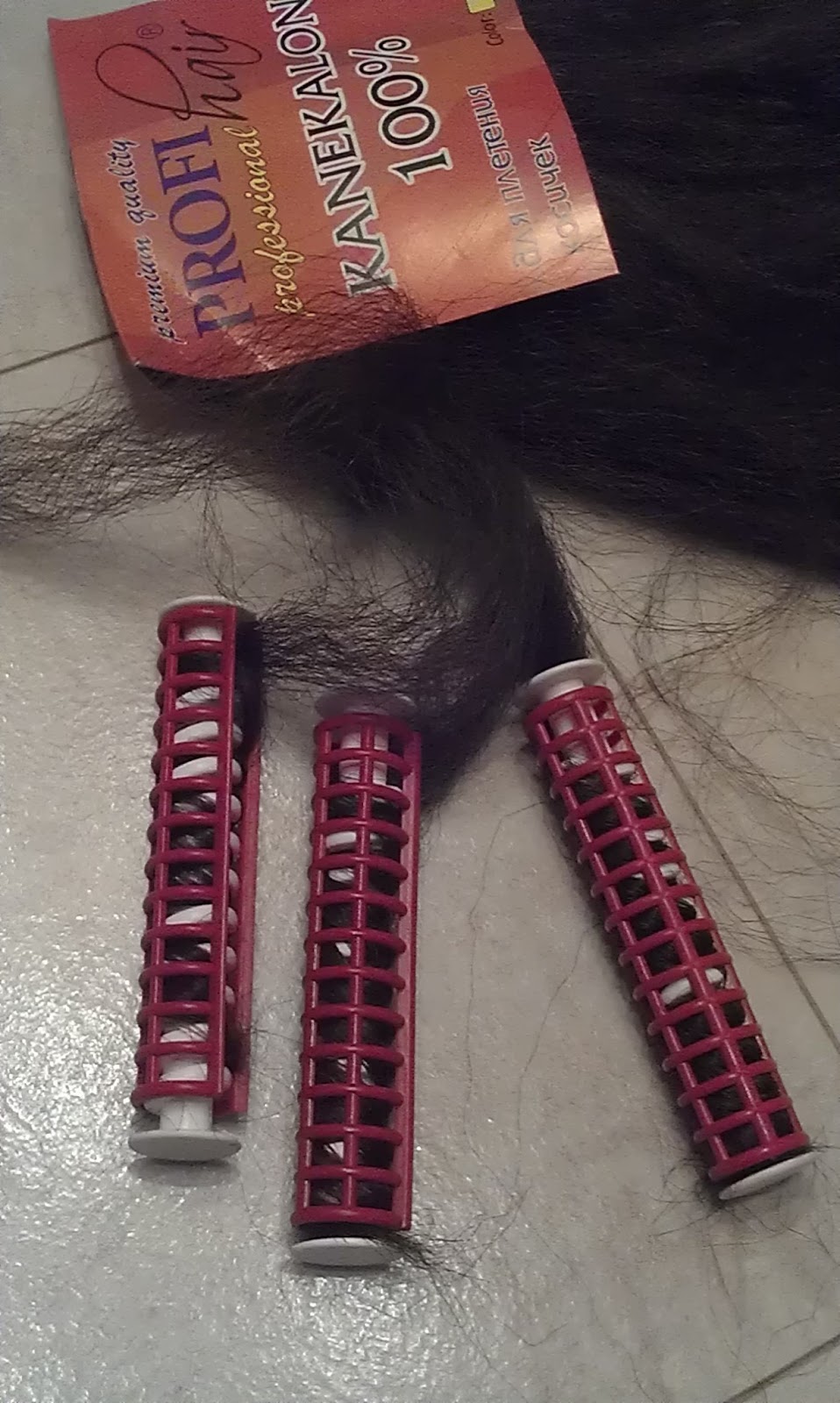 Есть ещё один способ, более быстрый (когда я рассказала о нём продавцу волос, она не поверила, говорит должны были расплавиться,,,): прядь нужно накрутить (можно взять и не термобигуди, а скажем фломастер или какой-то другой круглый, продолговатый предмет), обернуть фольгой и положить в почти кипящую воду на минуту, не больше! При более длительном контакте с кипятком, канекалон потеряет блеск, цвет потускнеет, ну и расплавится, наконец...