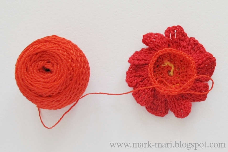 Четвертый ряд круга-основы обвязывается двумя рядами красных лепестков - за переднюю и за заднюю стенки.
