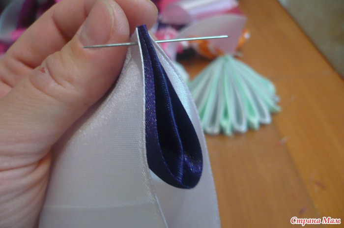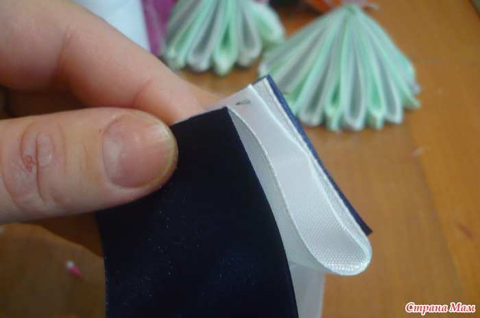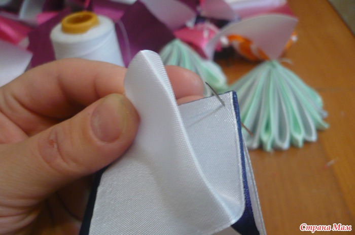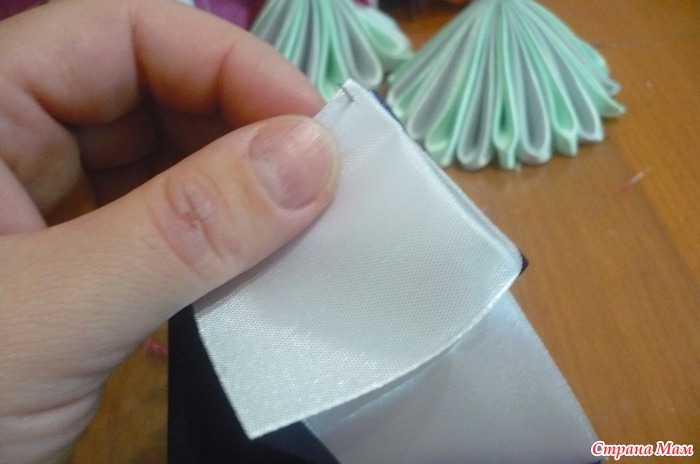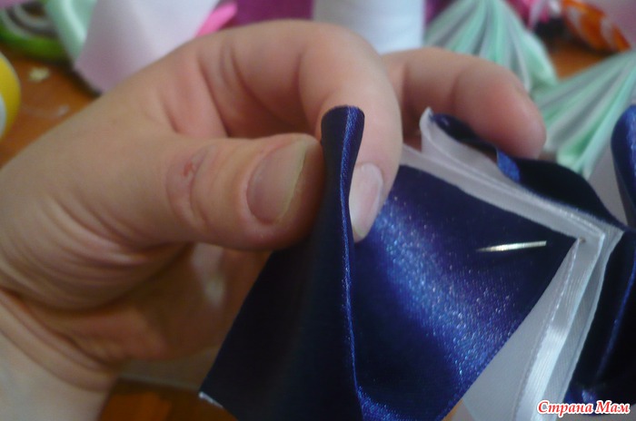 6. Далее в зависимости от желаемой высоты бантика соединяем верхние и нижний край.