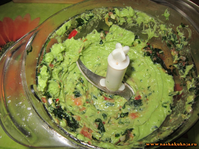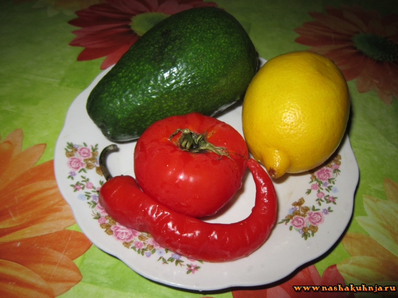 Рассмотрим как приготовить густой соус гуакамоле из авокадо, лимона, перца чили, помидора и зелени: