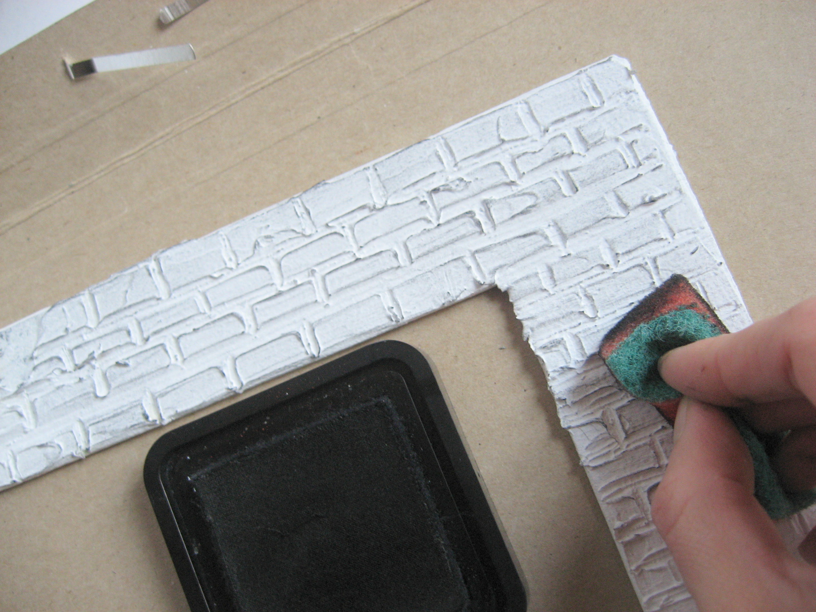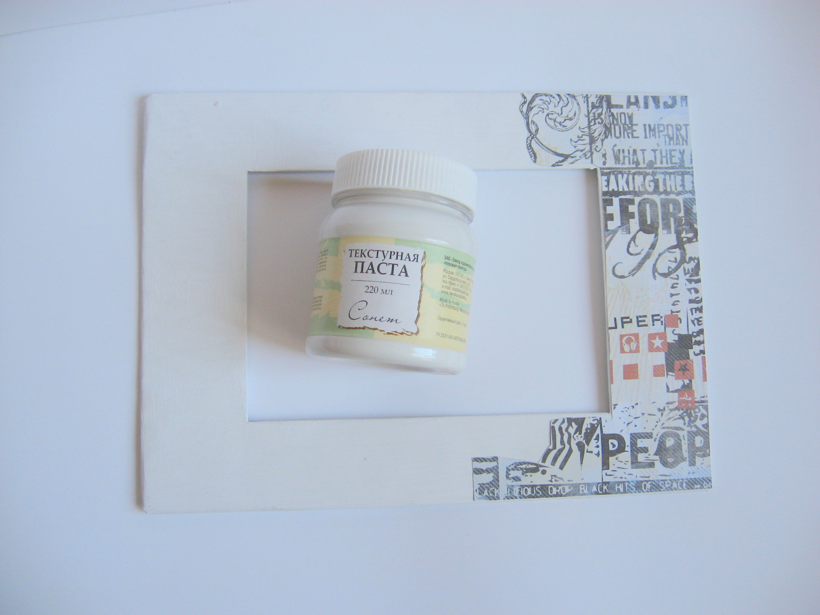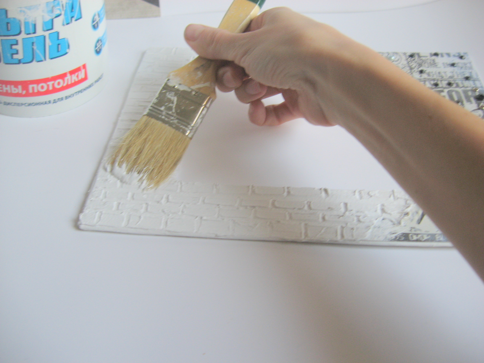 Штампомания в качестве дизайнера я сделала кое-что о чем давненько мечталось! Несколько дней назад поступил мне интереснейший заказ на рамку для фото. Девушка попросила (цитирую): "нечто в стиле хай-тек, урбанистический пейзаж...." Ничего себе?-подумала я))). Тут же созрела идея кирпичной стены. Итак, сейчас я покажу вам как делается кирпичная кладка при помощи текстурной пасты.Прежде всего подготовим лицевую часть рамки полностью для того, чтобы накладывать пасту. Картон должен быть очень плотным, не менее 2-3 мм, потому как текстурка имеет очень неприятную особенность, она ведет и выкручивает любую основу, плотностью менее 2 мм.