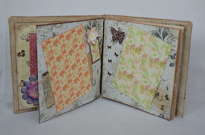 Мягкая тканевая обложка. Обложка окрашена в кофе и отштампована акриловой краской. Украшена бумагой ручной работы. Есть конечно недочеты. А как же без них :-) А остальное смотрите сами.