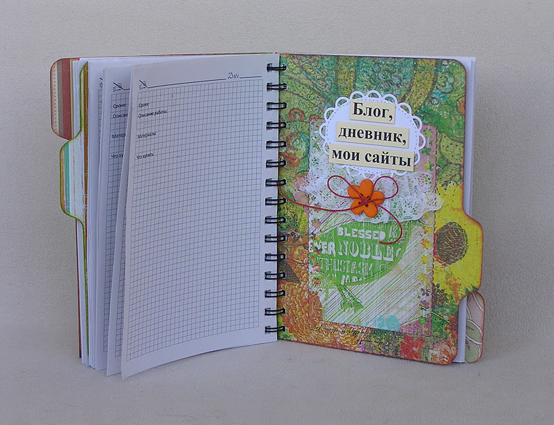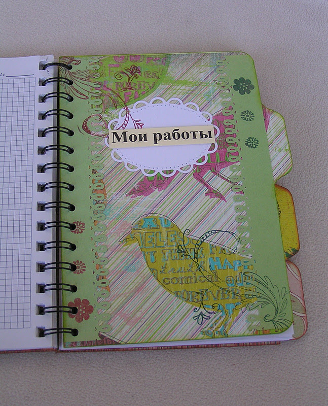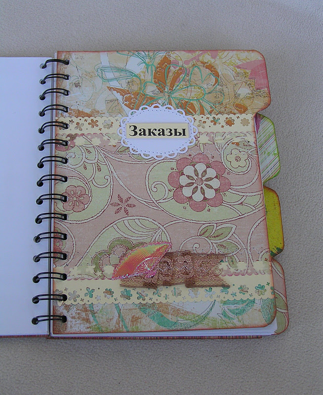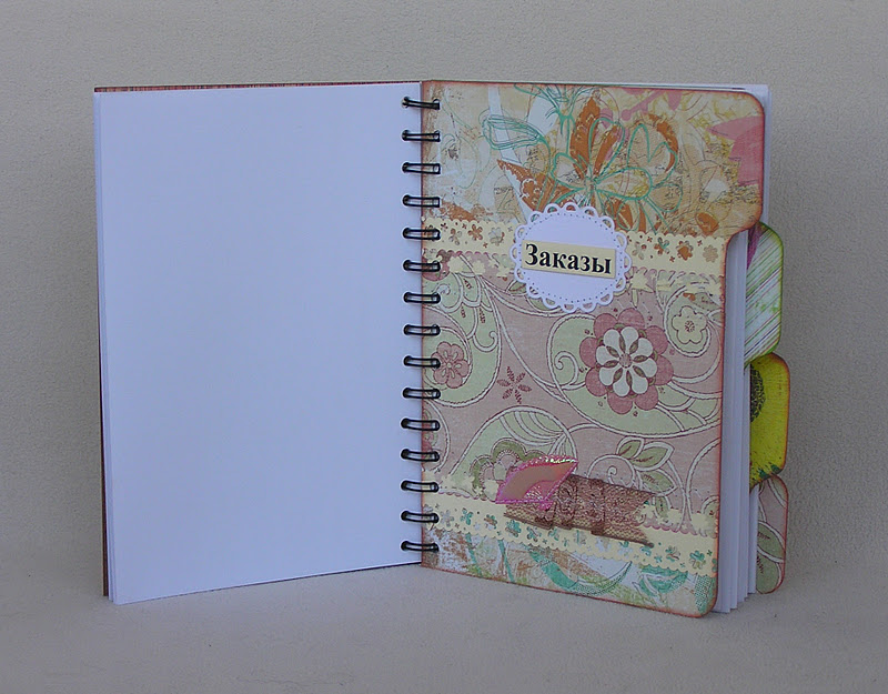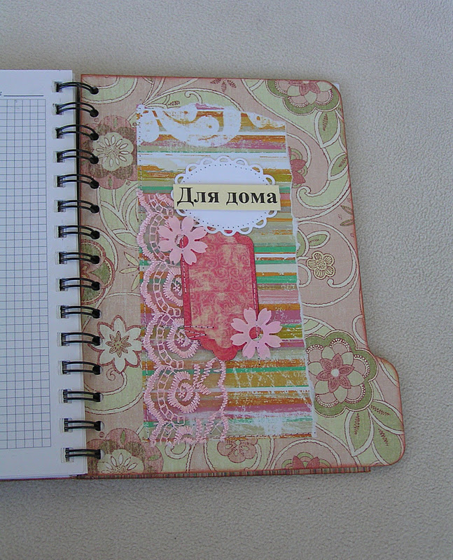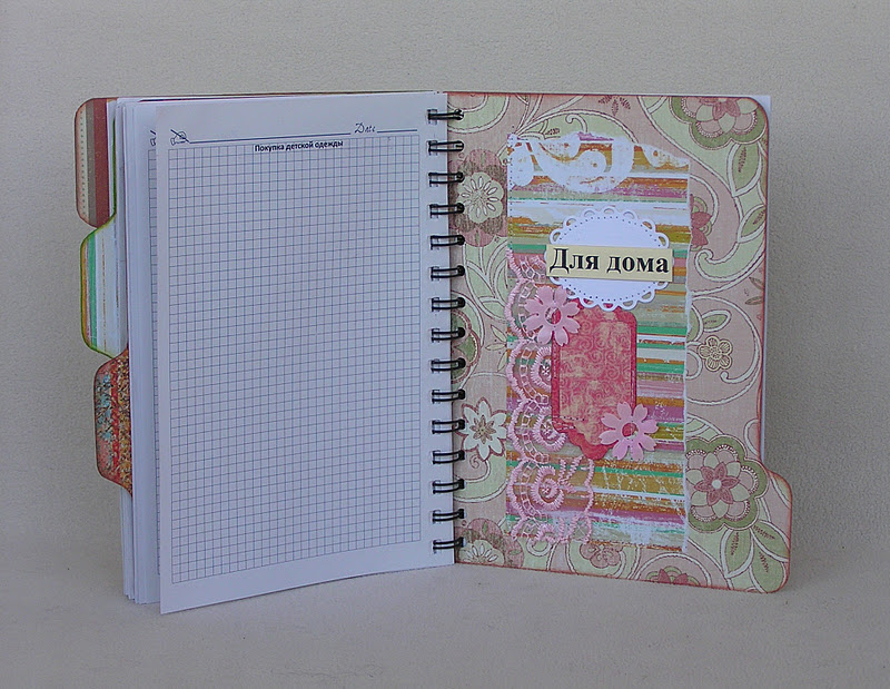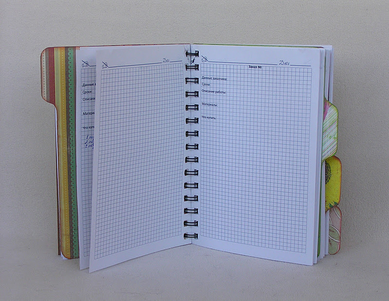 Этот блокнот, вернее рабочую тетрадь я делала для себя. Надоело писать все в одну кучу в блокнот. Я взяла обычную тетрадь в клеточку на 100 листов. Сделала обложку, 4 разделителя, 25 страниц на каждый раздел. Разделы: заказы, мои работы, раздел для работы с интернет-ресурсами и для дома. Составила план обязательных дел по дому на неделю, чтобы не делать все в один день и успевать многое. В общем пыталась систематизировать и распланировать свои дела.