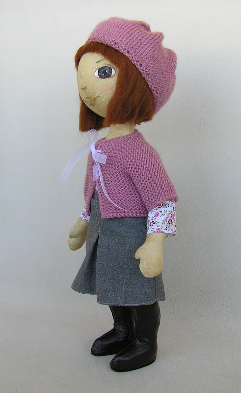 Рост 42 см. Материалы: хлопок, шерсть, акриловая пряжа, шерсть для валяния, искусственная и натуральная кожа. Пуговичное крепление рук и ног. Сама стоит и сидит.