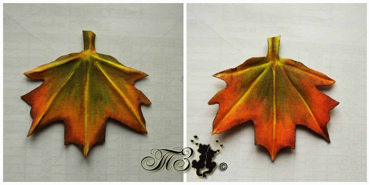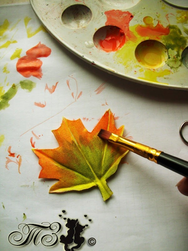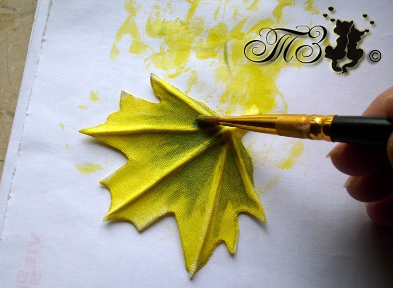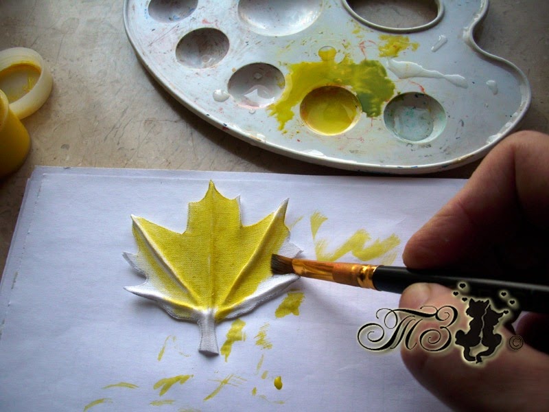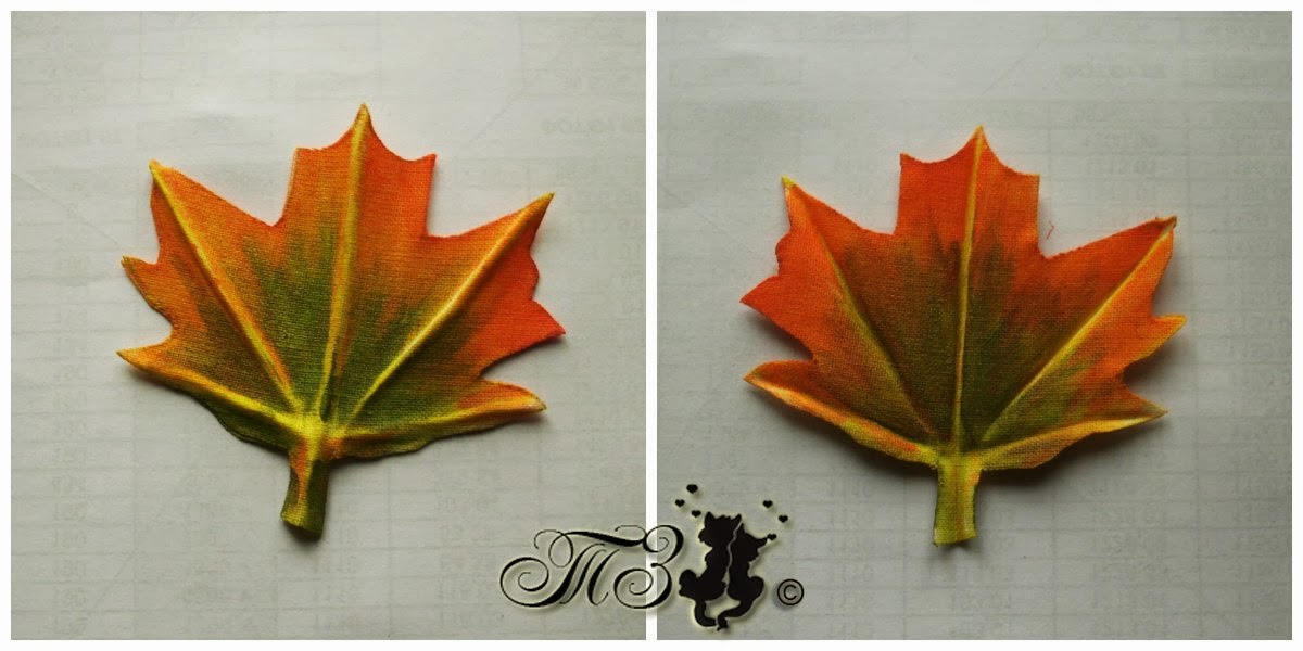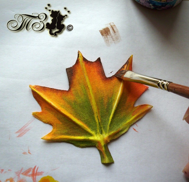 В принципе, расписывайте свои листики так, как вам нужно по смыслу. Я взяла за основу осенний кленовый листик, где присутствует много оттенков.