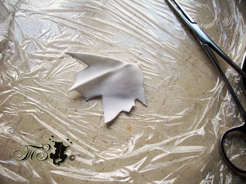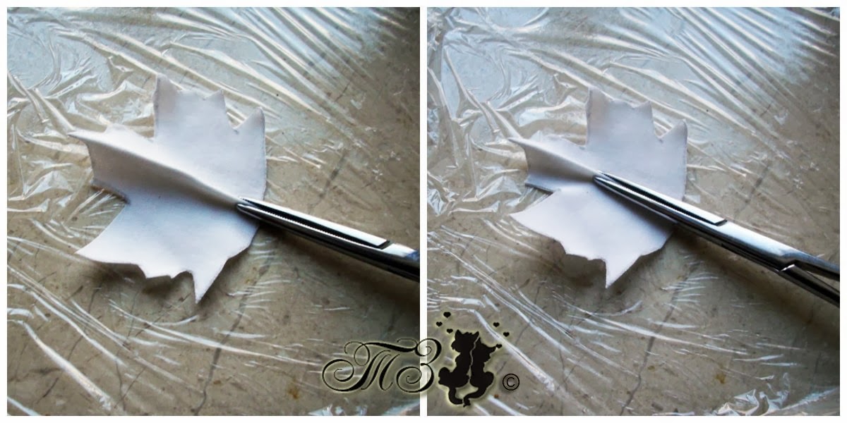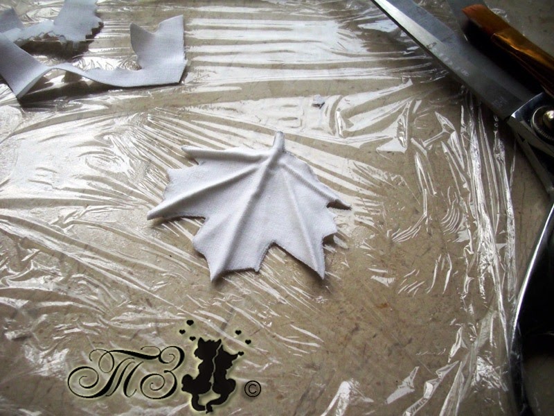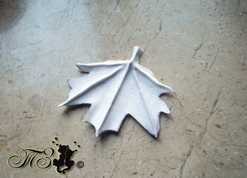 Когда дело дошло до листика, призадумалась: хотелось бы сделать его из ткани, но прошивать на машинке (или на руках) такую мелочь мне показалось заморочливым. Да потом еще и выворачивать…. да и швы могли получиться довольно грубыми… (((