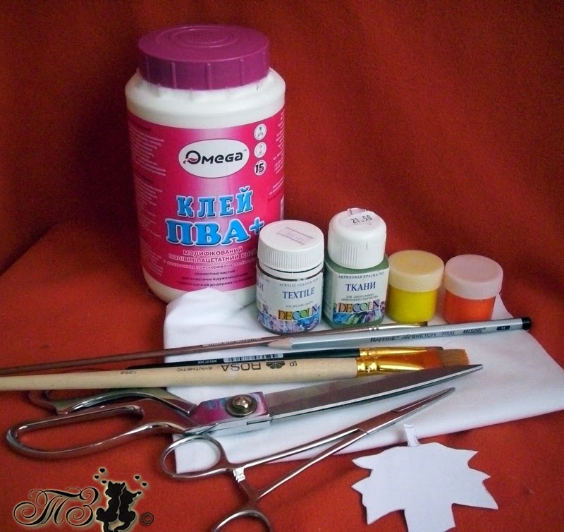 - акриловые краски нужных цветов (у меня это желтая, оранжевая, зеленая и коричневая),