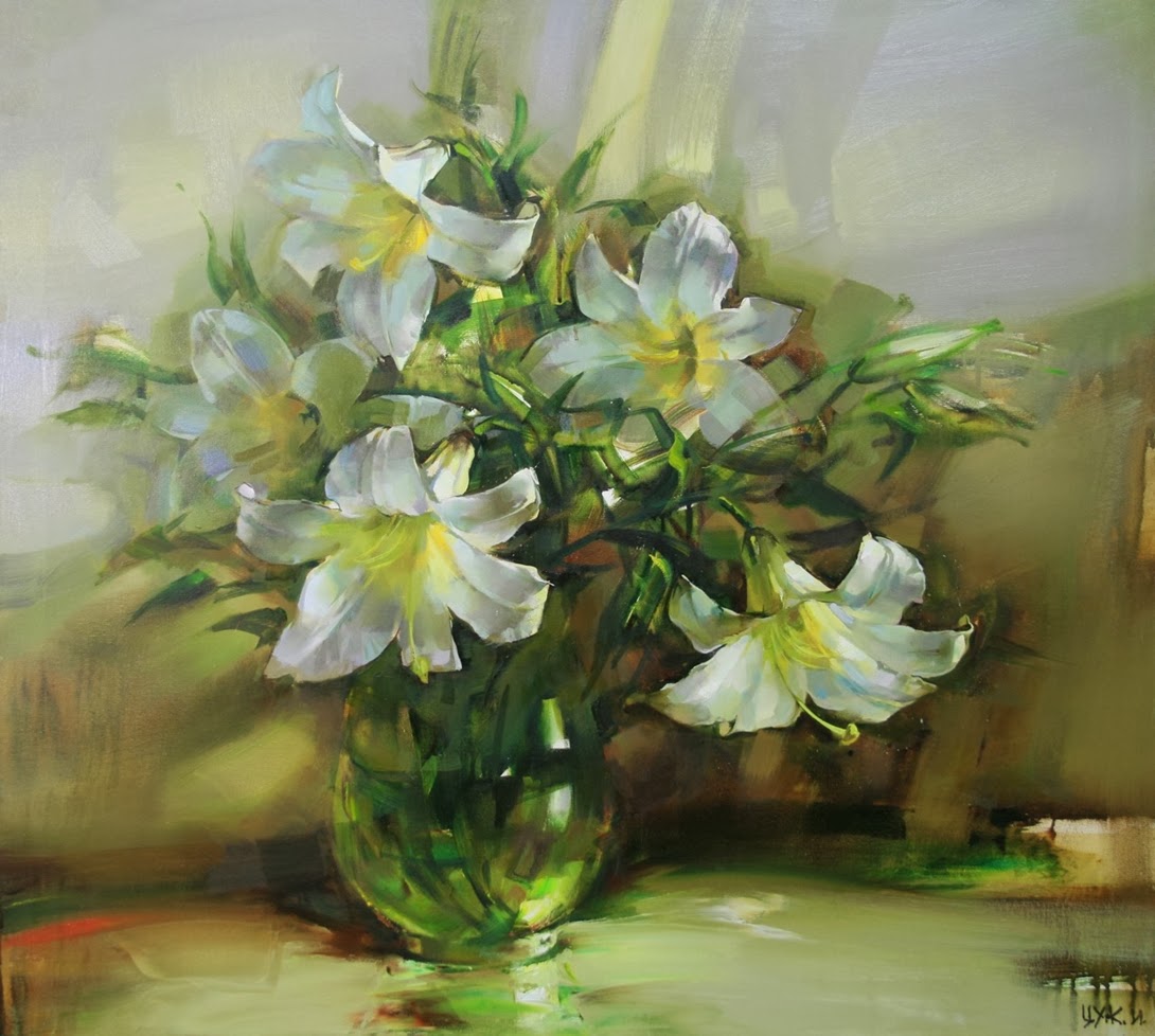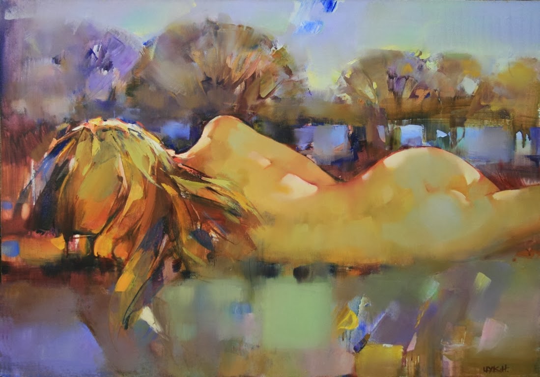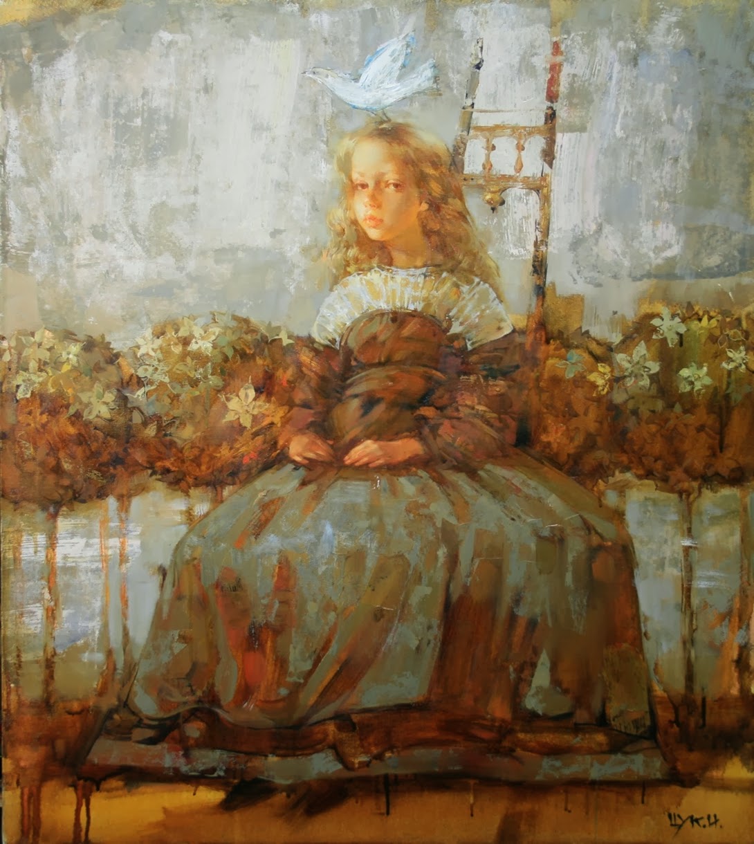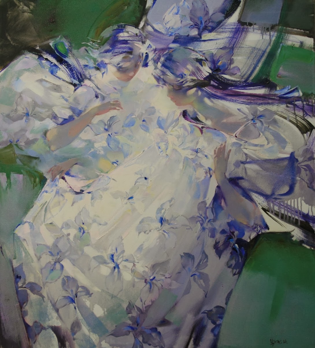 A female flower is depicted outside the context of the time, society, history and way of life. She is always "smell" and never turns into a fetus. Poetiziruya perfect moment Tsukahina destroys a long time and space. In her work is always a receptive audience-potential-like bumblebee, drinking the nectar of flowers. Combining the broad strokes with a smooth, lessirovochnym letter, reinforcing the decorative sound of the plane, the artist creates on canvas image of a languid voluptuous harem, sultry Southern sun, spicy flavor of the East. Oriental traits are expressed in the exquisite eroticism, hedonism and love of being as the sole reality. Her creative, unique in the community aesthetics. Inheriting the tradition of artists of the early twentieth century, Mikhail Vrubel, Gustav Klimt, Van Gogh, it's close contemporary and postsimvolicheskoy postromanticheskoy artistic paradigm.
