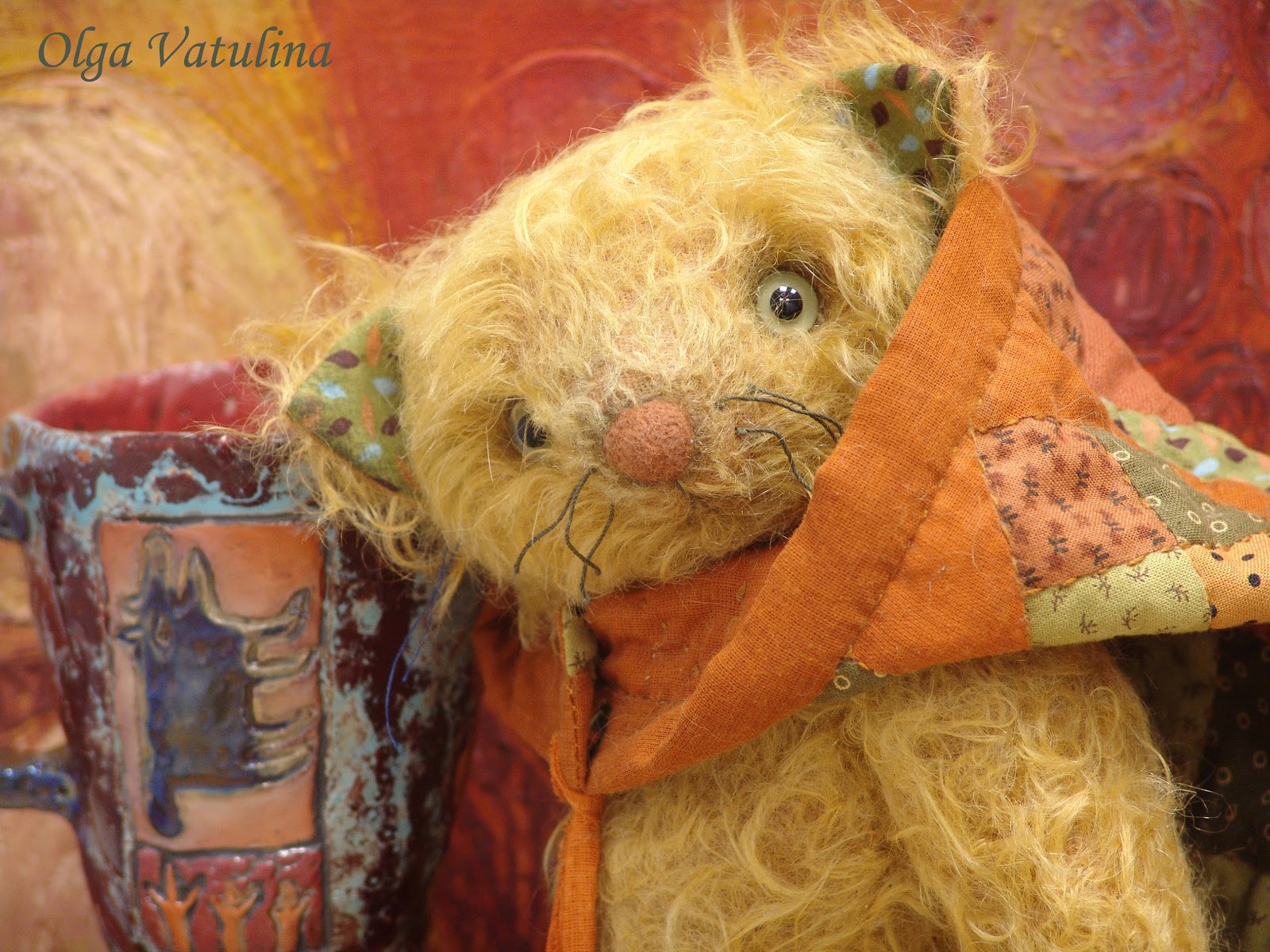 авторская керамика Марины Акиловой (Нижний Новгород). Кот на всех фотографиях снят на фоне живописи Алины Шевяковой (Саров)