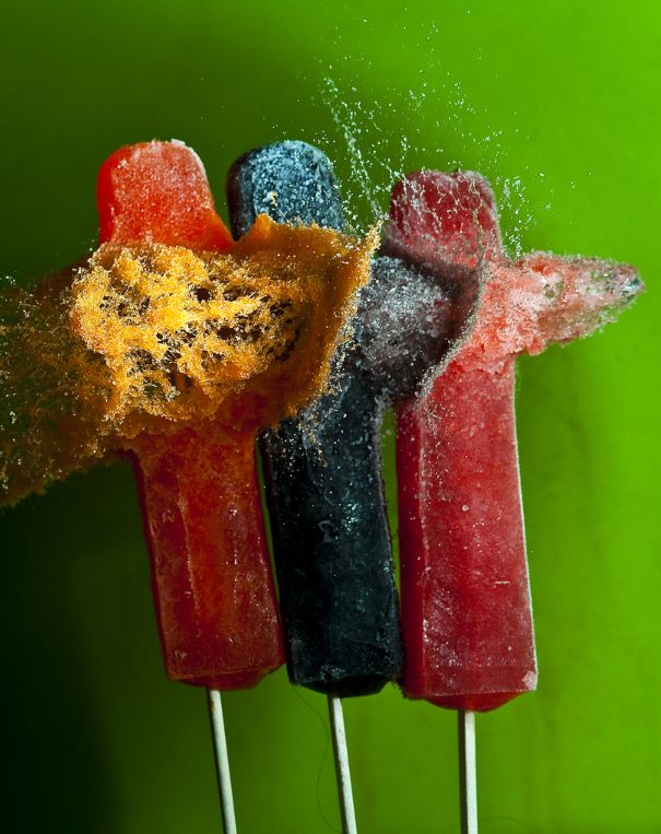 Красота столкновений от Alan Sailer. Прикольные стоп-кадры столкновений пули с различными предметами. 33 фото.