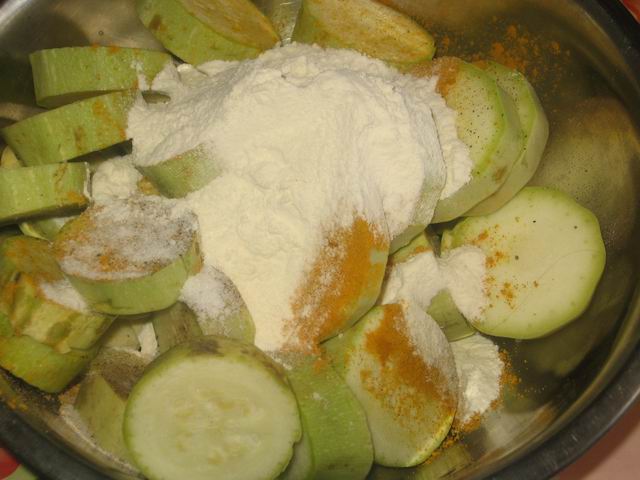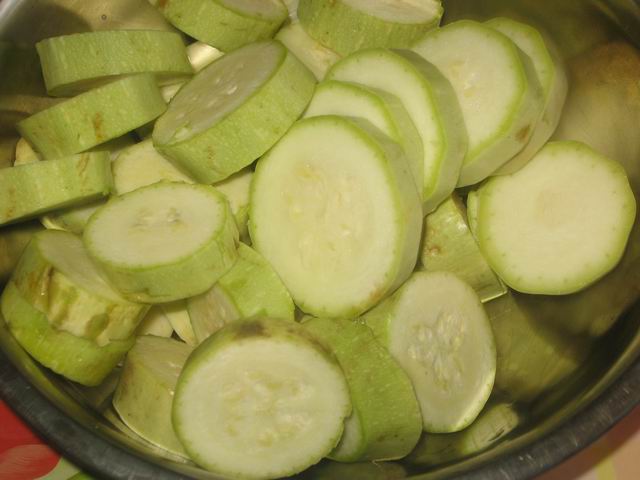 Кабачки нарезать кружочками, толщиной 1 см