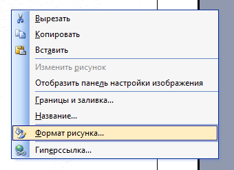 Нажимаем "Вставить" и наша картинка появляется на листе. В моем случае она слишком большая: я хочу ее распечатать на листе 15х10см в правом нижнем углу. Приложив линейку к листу скрап-бумаги, я отмериваю примерный нужный размер - у меня получилось примерно 7х9см. Для того, чтобы изменить размер картинки в Microsoft Word, необходимо кликнуть на картинке правой клавишей мышки и выбрать пункт "Формат рисунка...":