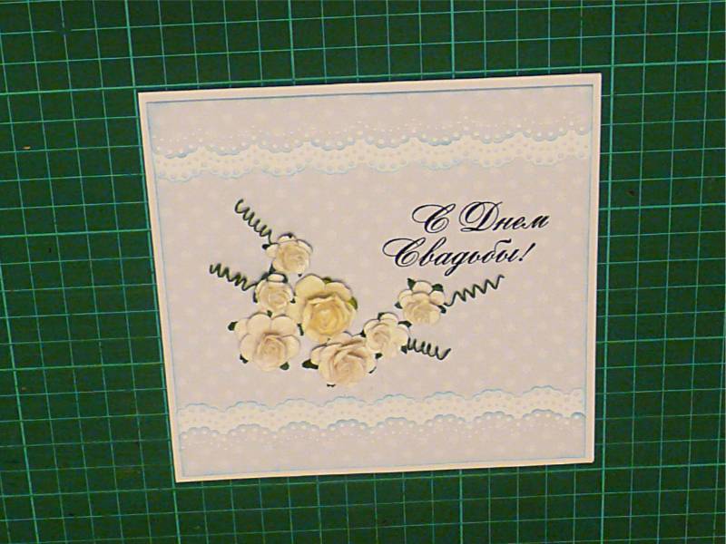 Предлагаю вместе сделать свадебную открытку. На ее изготовление (вместе с процессом фотографирования и установки фотоштатива) у меня ушло 40 минут.