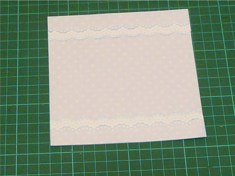 5. Тонируем края фестонов. Для открытки я выбрала бумагу нежно-голубого оттенка, поэтому края чуть-чуть тонирую голубым цветом