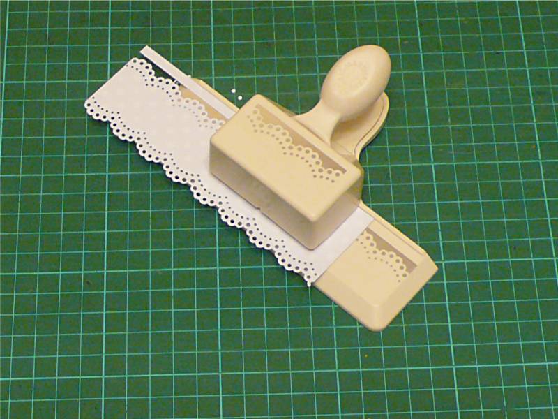 3. Краевым дыроколом обрабатываем полоски из цветной и белой бумаги с двух сторон.