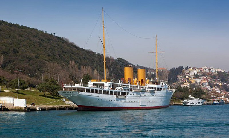 Savarona. Бывшая яхта Кемаля Ататюрка. Длина — 124 метров, скорость — 16 узлов.