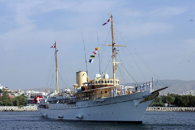 Dannebrog. Яхта королевы Дании. Длина — 78,4 метров, скорость — 13 узлов.