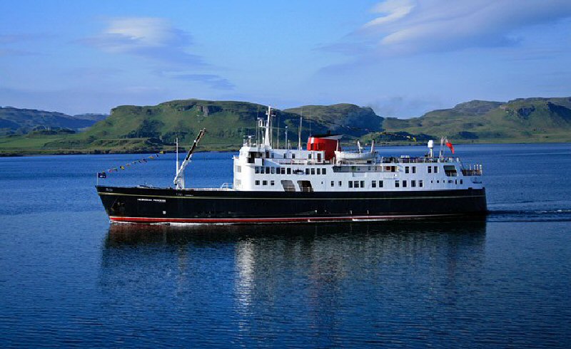 Hebridean Princess. Яхта арендуемая королевой Великобритании. Длина — 71 метр, скорость — 12 узлов.