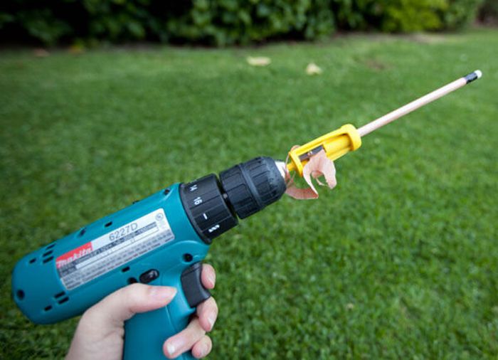 Вам понадобится купить прикольный гаджет под названием "профессиональная точилка для карандашей", и прибегнуть к помощи шуруповерта.