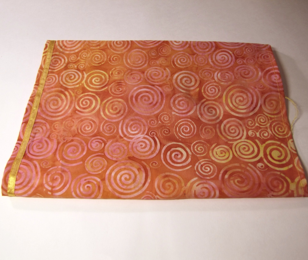 У нас должен получиться результат, как показан на фото. Обрезаем ткань по контуру ножницами зиг-заг (или обычными ножницами, но в местах изгибов делаем насечки, не доходя до контура на 1-2 мм), отступив от строчки примерно на 0,5 см.