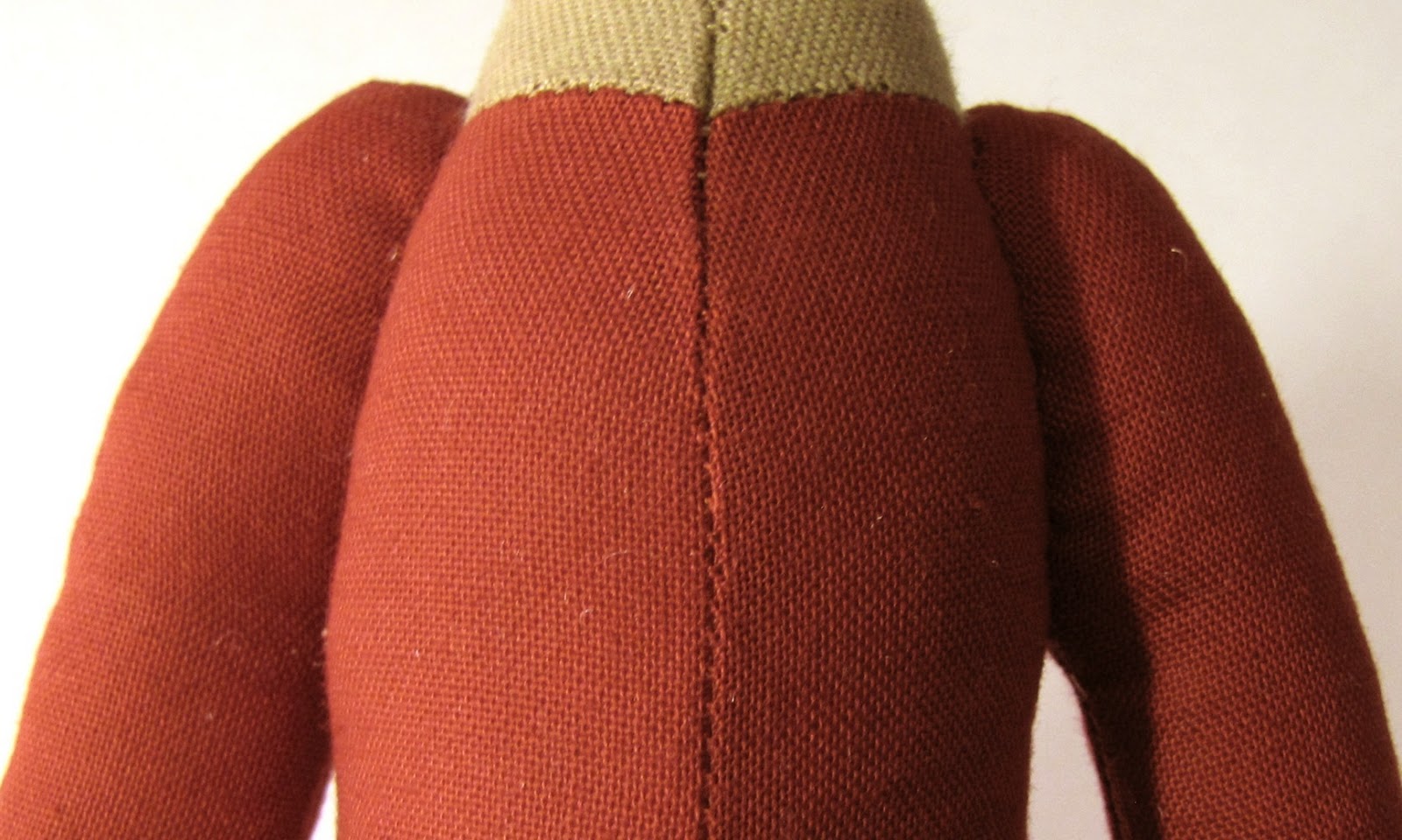 Обратите внимание на ноги – сначала их плотно набиваем до середины (на выкройке указана линия, до которой нужно набивать), затем нужно прострочить по данной линии и только затем – продолжать набивать остальную часть ноги. Причем набивать нужно не плотно, чтобы кукла могла сидеть (это относится и к туловищу – ближе к нижней границе не плотно набиваем куклу).
