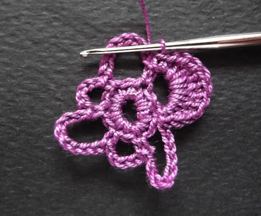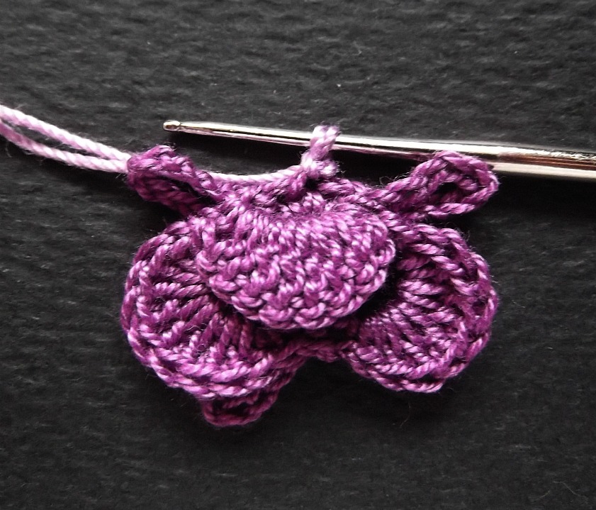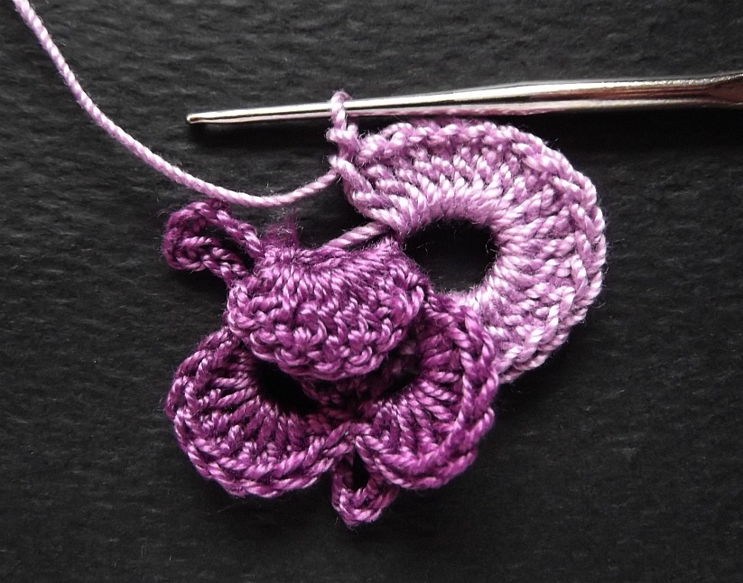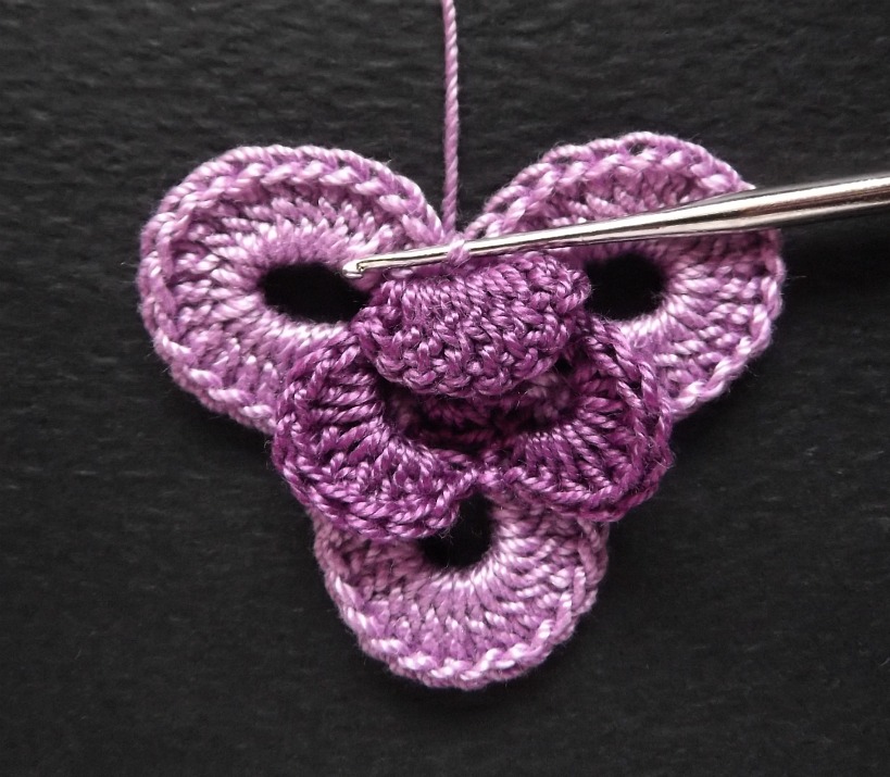 2. вяжем 2 центральных и нижних лепестка (2 ряда)