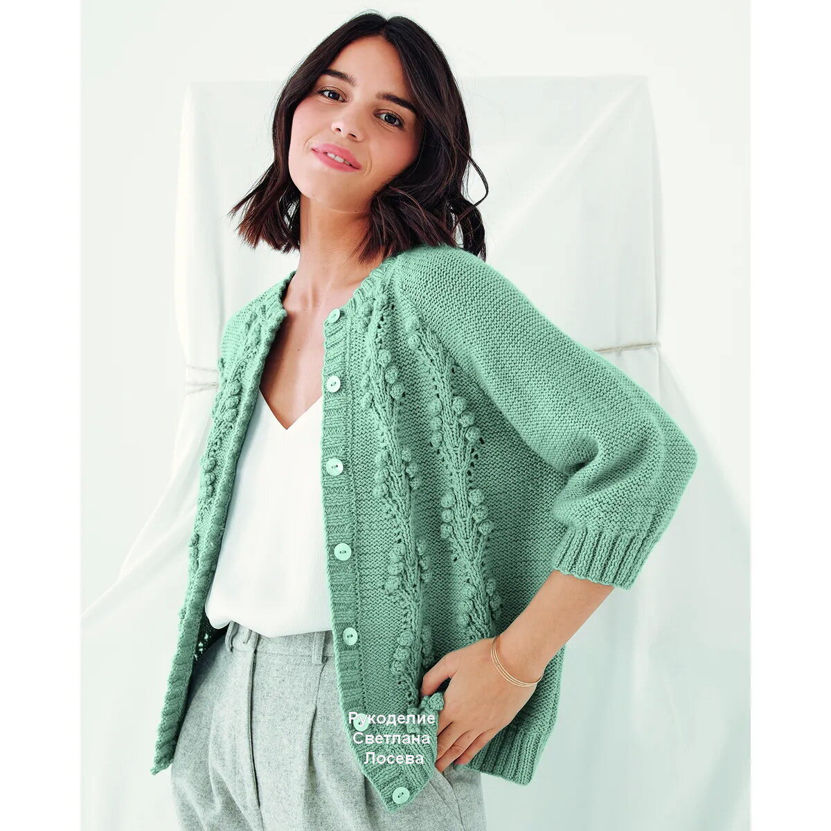 Шишечки я вязала крючком. А у модели они связаны спицами и очень объемные.
