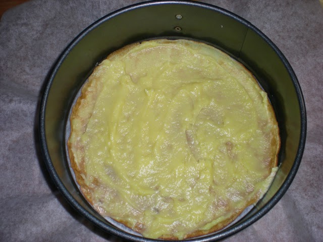 Разъемную форму застелить бумагой для выпечки. Уложить на дно блин.