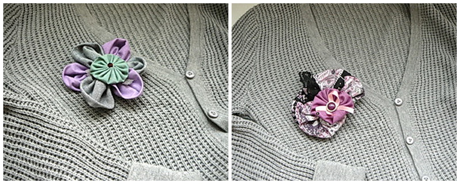 Шаг 8. После того как цветок собран, в середину пришиваем еще один лепесток, что бы закрыть швы внутри цветка.