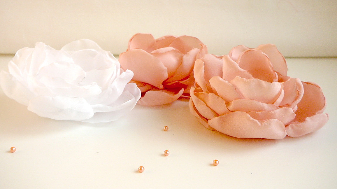 Шаг 1. Из атласной ткани нарезаем полоски шириной 3-4 см и нарезаем квадратики. Или же можно взять широкую атласную ленту и нарезать из нее так же квадратики.