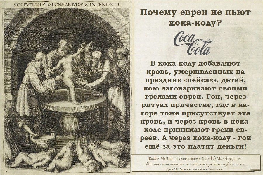 В заключение не могу не сказать: как же мы мало знаем еврейство и евреев! Мы ведь совсем их не знаем! Но люди кланяются и молятся по догматам ритуальным и служат евреям даже не догадываясь об этом, придумав себе тех "божков", которых никогда не существовало в природе, но существовало и существует по сей день в этих ужасных территориях и по всему миру существа внешне похожие на людей, которые никогда не были Человеком и людьми.