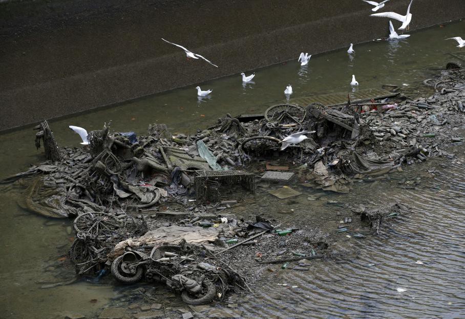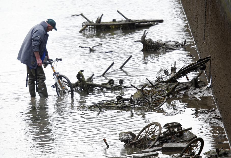 В Париже впервые за последние 15 лет, власти решили осушить один из самых знаменитых каналов Сен-Мартен, чтобы очистить его от скопившегося мусора. Но то, что нашли рабочие на дне канала, просто поражало. В толстенном слое ила и грязи лежали телефоны, радиоприёмники, тележки из супермаркетов, множество велосипедов, скутеров и даже мотоциклы.