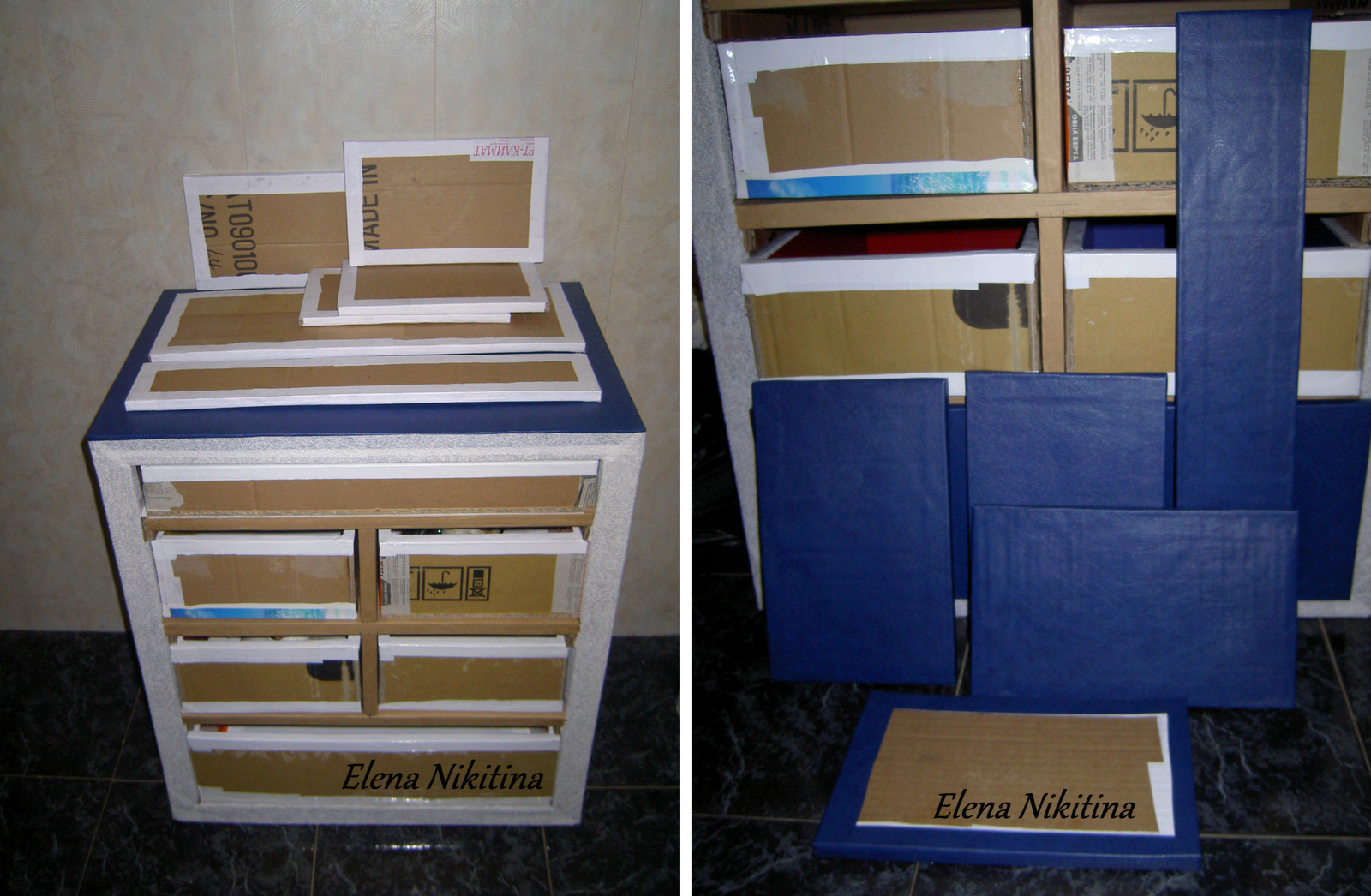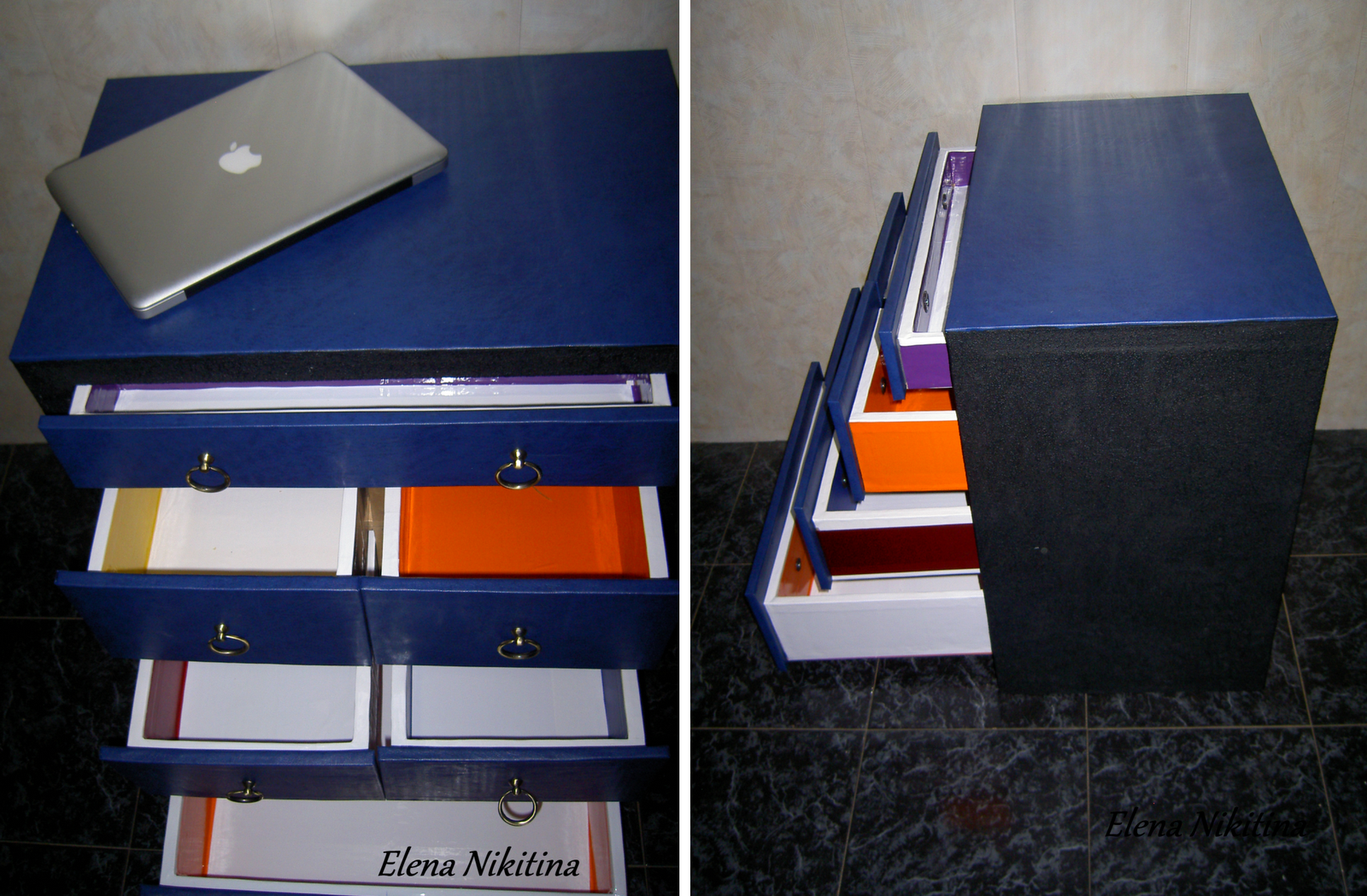 Конечно, можно заказать такой комод из нормальных мебельных досок. Но вот захотелось сделать нереальное. Слепила сие произведение год назад. Пользуюсь и нарадоваться до сих не могу - прочный, вместительный, красивый!!!