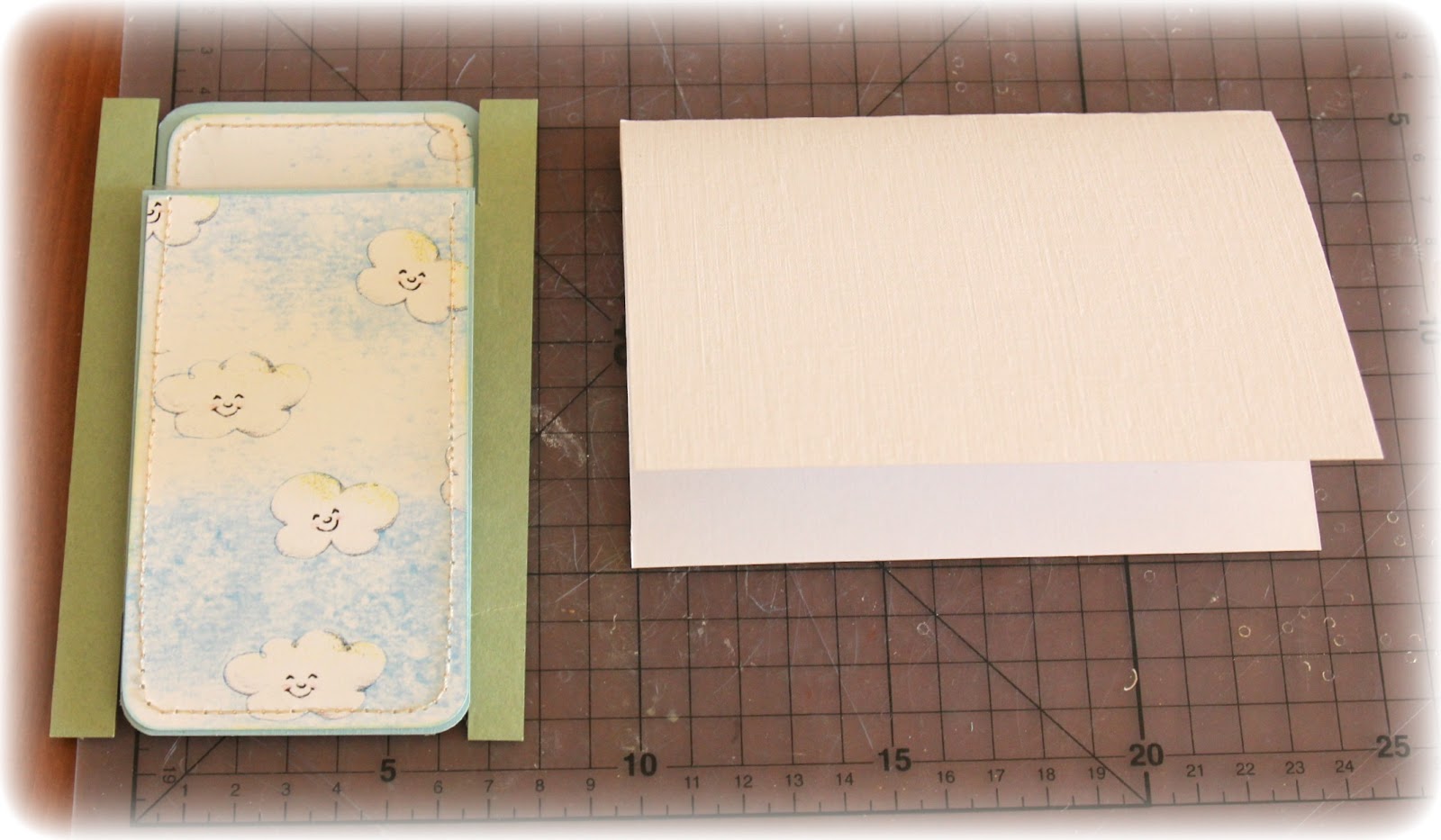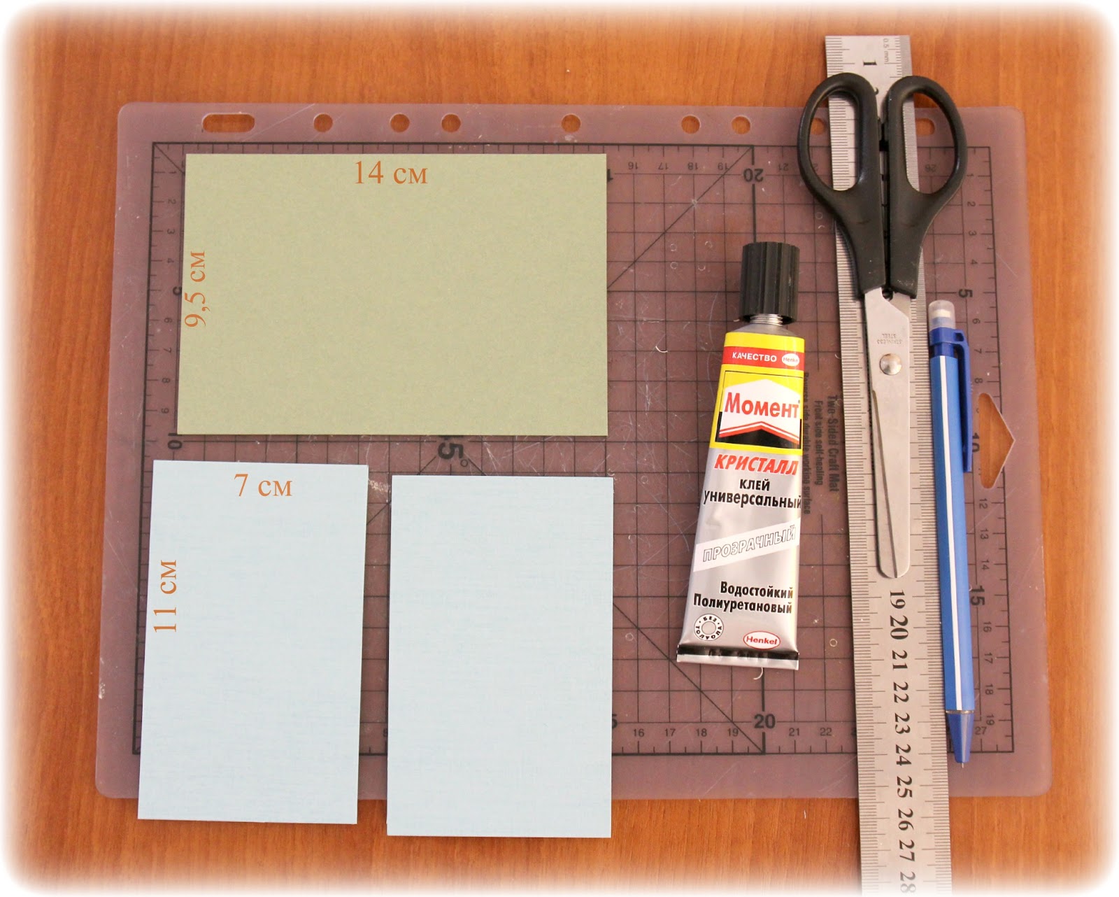 Теперь берем основу открытки сложенную вдвое - наша конструкция должна в нее вмещаться и остаться запас - у меня размер 14 см +/- 2 мм и 9,8 см