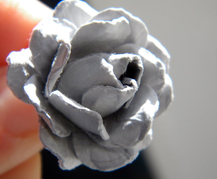 Внутрь нанесла немного клея и свернула в бутон, накладывая один лепесток на другой: