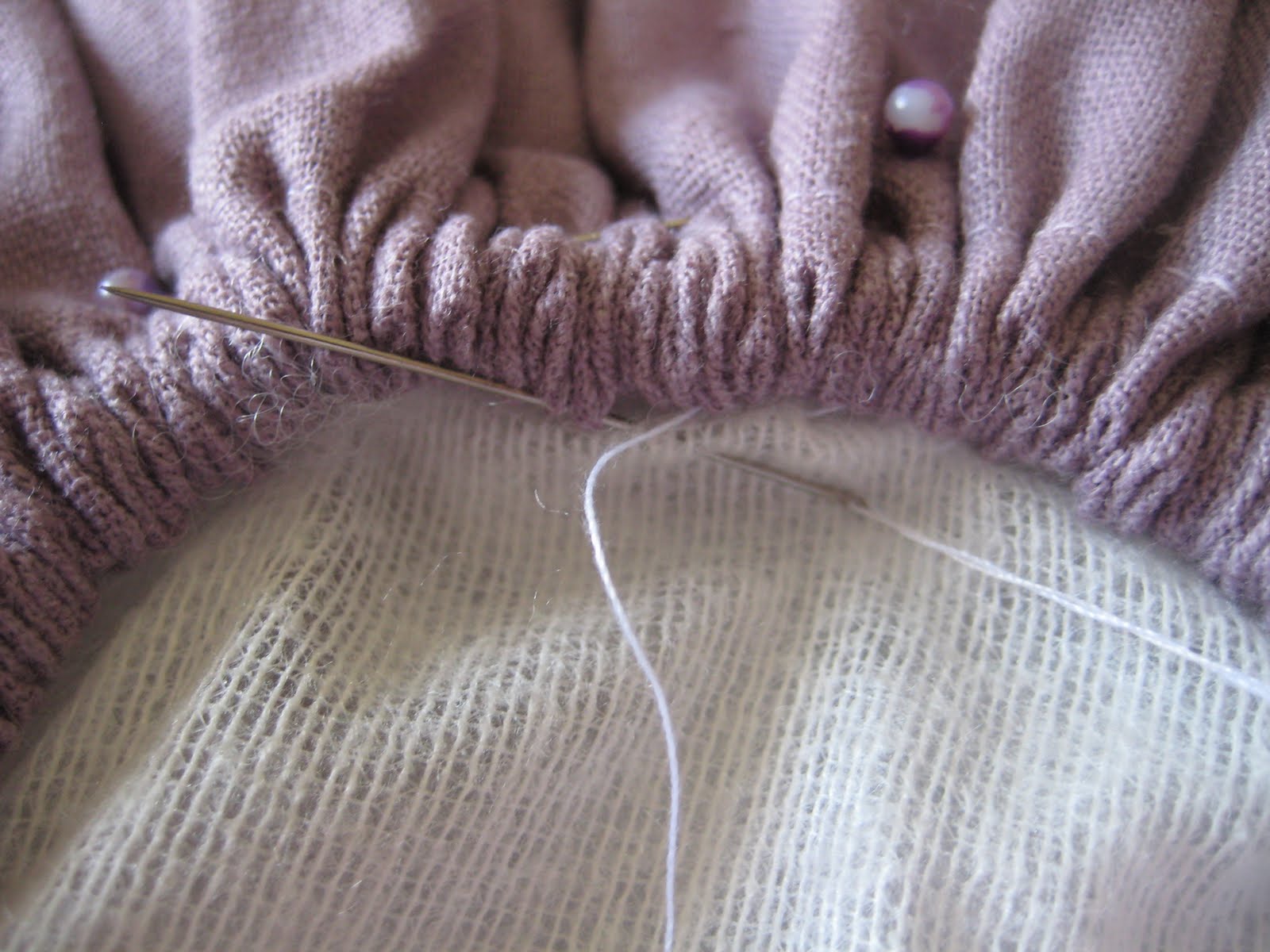 Я взяла мягкую марлевую ткань, вырезала круг большего диаметра, чем открытое отверстие, подсунула его вниз и пришила потайным швом. Так оказалось гораздо аккуратнее.