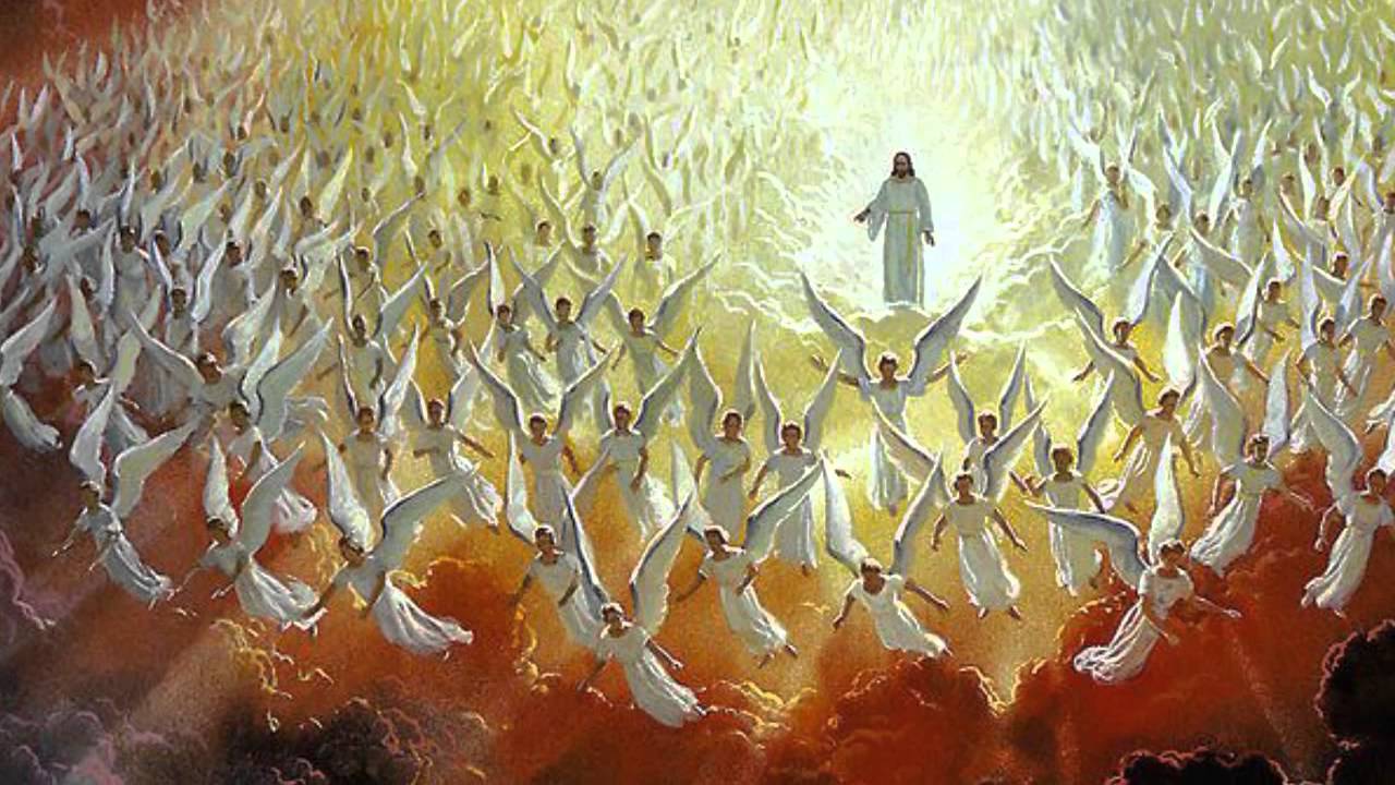 В белом здесь изображены дева Мария, Иисус, ангелы и святые.