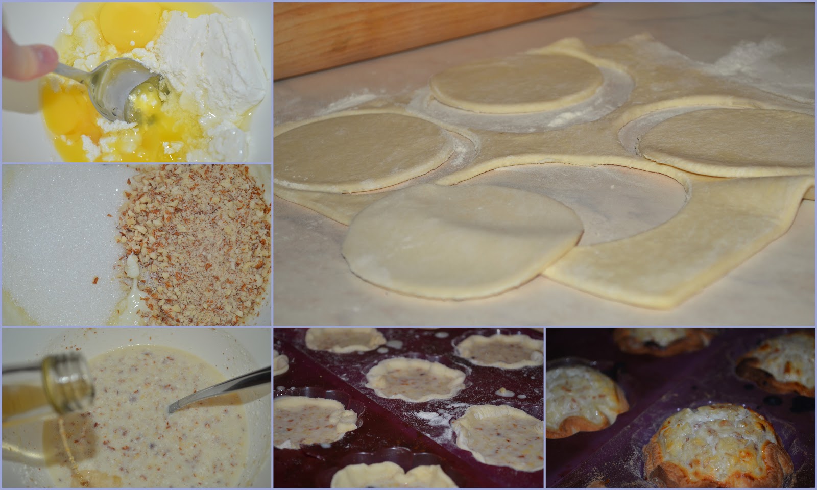 4) тесто раскатать не сильно тонко и разрезать его на 12 равных квадратов - а затем из каждого квадрата вырезать круг большой чашкой. Диаметр примерно 10 см. Кстати говоря можно оставить и квадраты, просто пирожные будут не совсем "классическими", но на вкусе не отразится