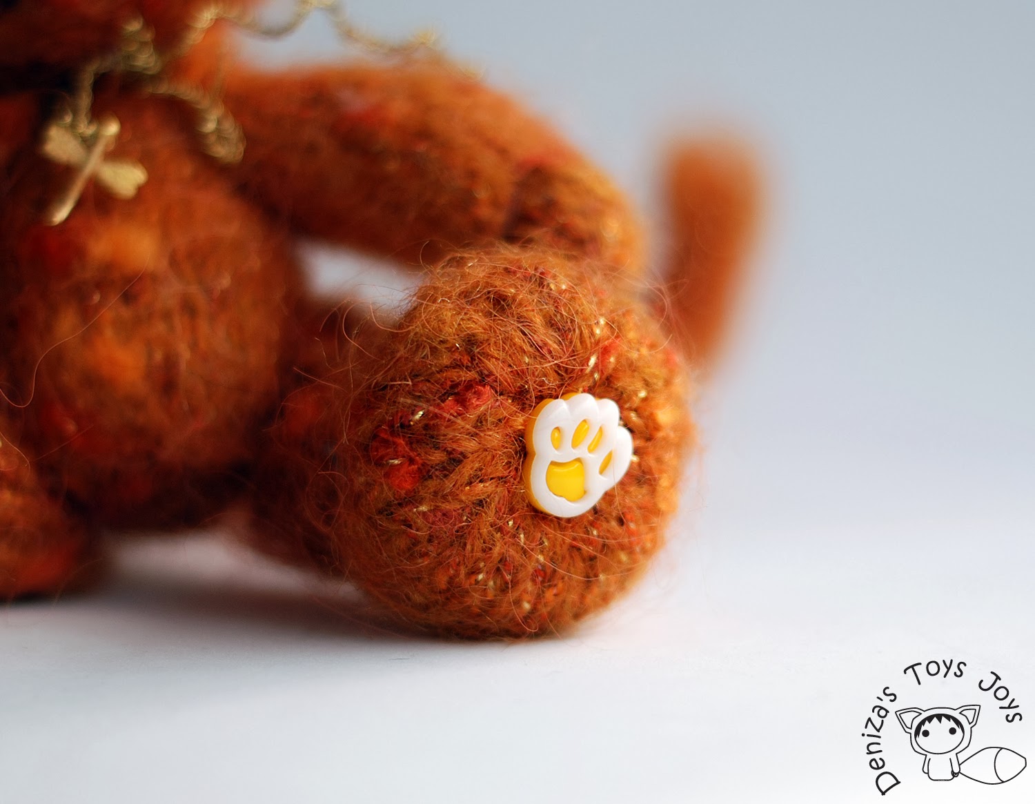 На пяточках у него пуговки-лапки, а внутри хвоста - проволочный каркас, поэтому хвост может принимать различные положения.
