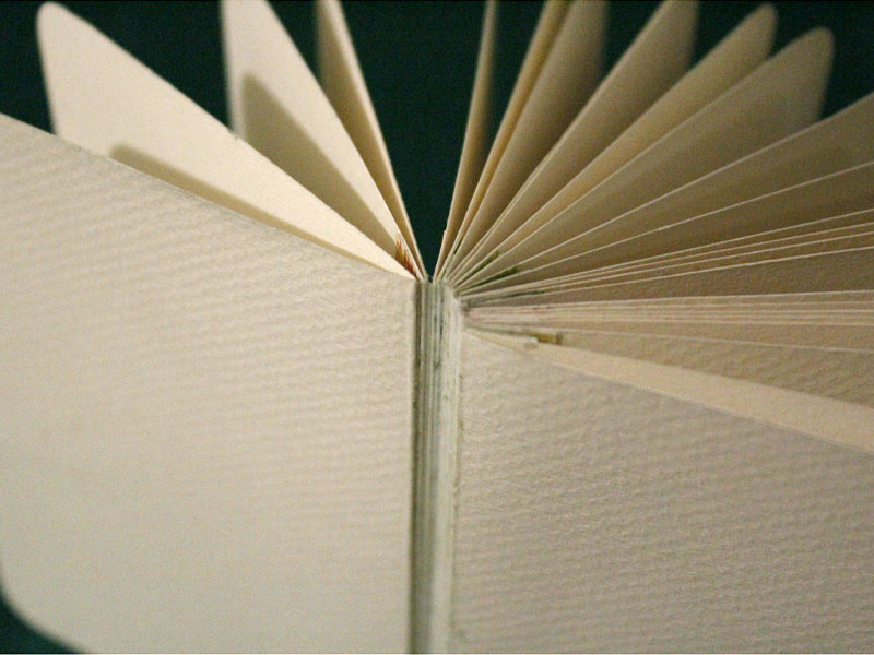 При помощи узких полосок склеиваем наши листочки попарно, получившуюся книжку можно по корешку промазать клеем: