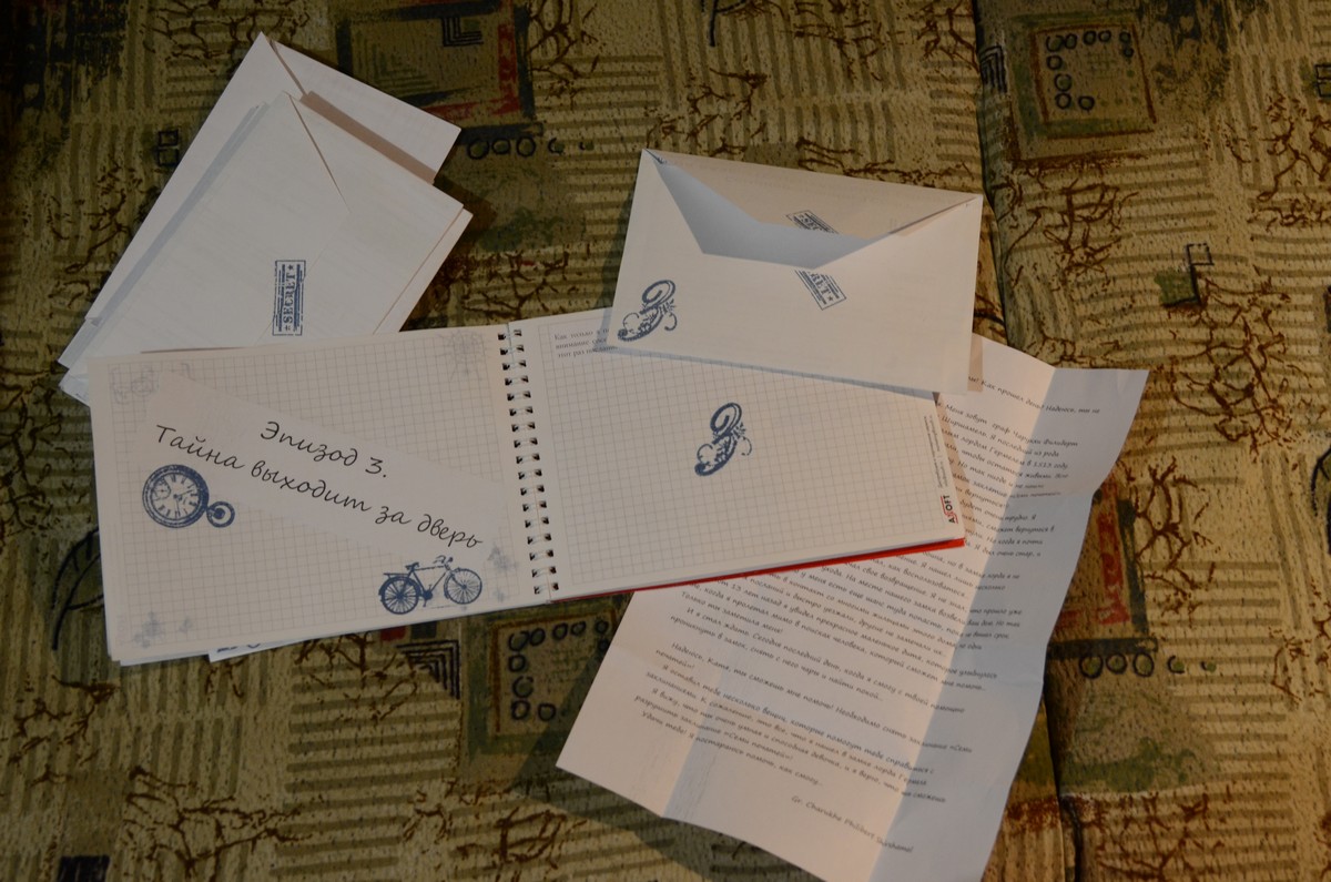 Неизменным спутником всего путешествия был специальный блокнот, в котором решались задания, куда вкладывались конверты и который потом можно дальше использовать для собственных детективных нужд.