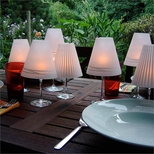 В завершении нужно в бокал положить небольшую горящую свечку, и сверху одеть такой вот импровизированный абажур.