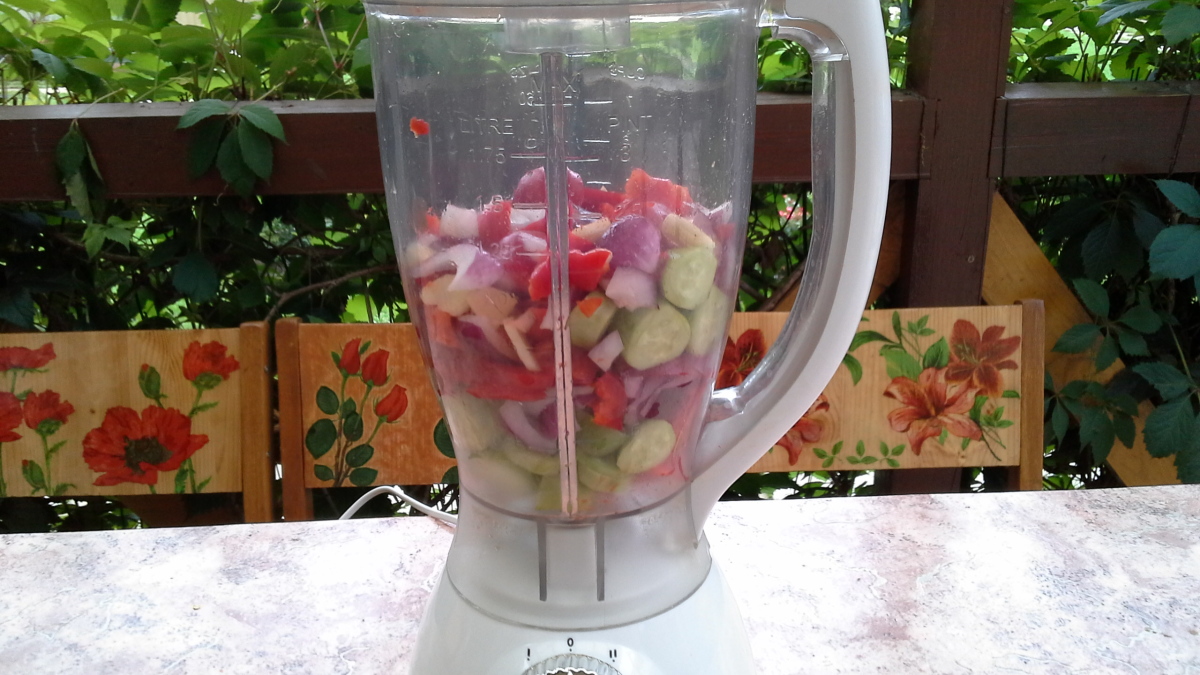 Убрать «Гаспачо» на 4 часа в холодильник, чтобы он настоялся и охладился.