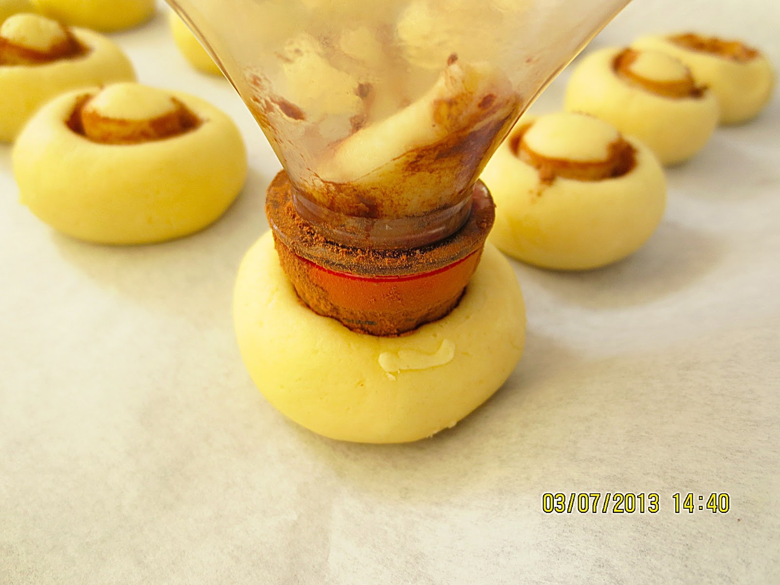 7.Нажать горлышком бутылки на поверхность каждого колобка