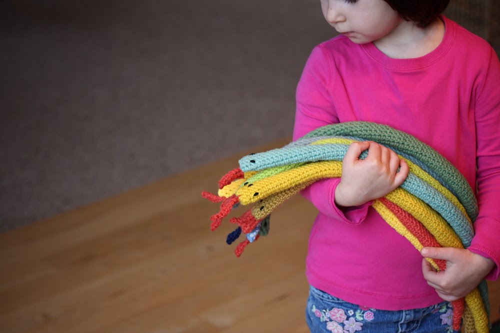 Сделать такую змеюку очень просто самому, А радости в семью она приносит не мало. Дети очень весело бегают с ними по дому и шипят друг на друга. Можно прицепить за штаны как хвостик и догонять друг друга.