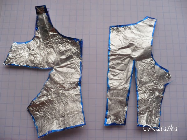 Итак, нам понадобится фольга, канцелярский узкий скотч, маркер (можно использовать пищевую пленку, малярный скотч и карандаш, но лично мне сподручней фольга и скотч), и конечно же кукла или манекен. Для ускорения процесса, я не обматываю всю куклу целиком, а только половину, а талию полностью, чтоб было за что скотч крепить, итак обвернули куклу фольгой - 1-2 слоя, и обматываем скотчем: