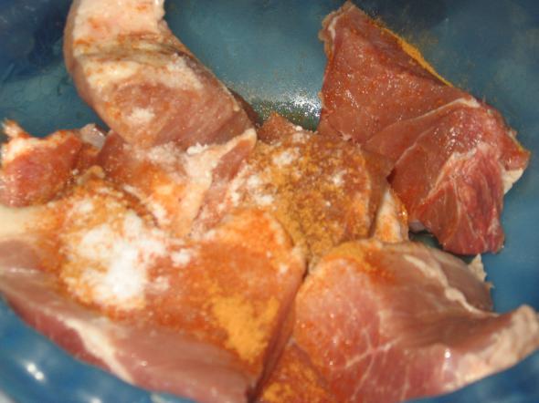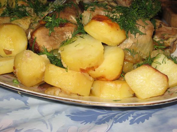 Для этого не понадобится  много продуктов:свинина около килограмма, картошечка, лук, специи и никакого масла!